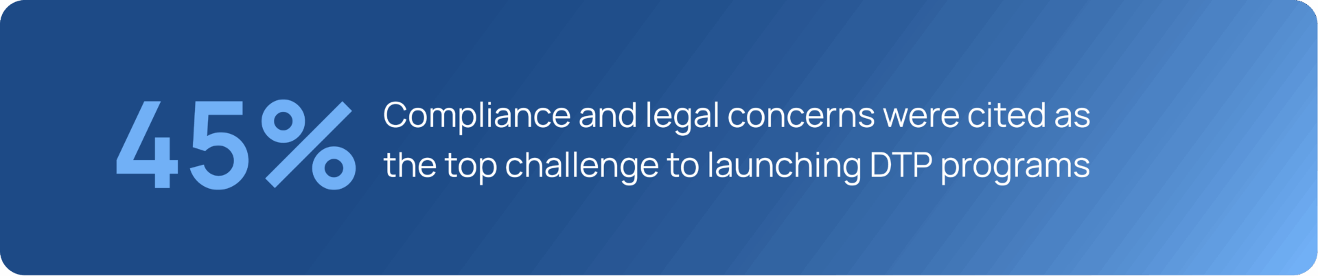 Despite the momentum, barriers remain. Compliance and legal concerns were cited as the top challenge to launching DTP programs (45%), followed by budget limitations and internal alignment. Respondents also flagged cost as a sticking point—both for pharma companies and for patients themselves.